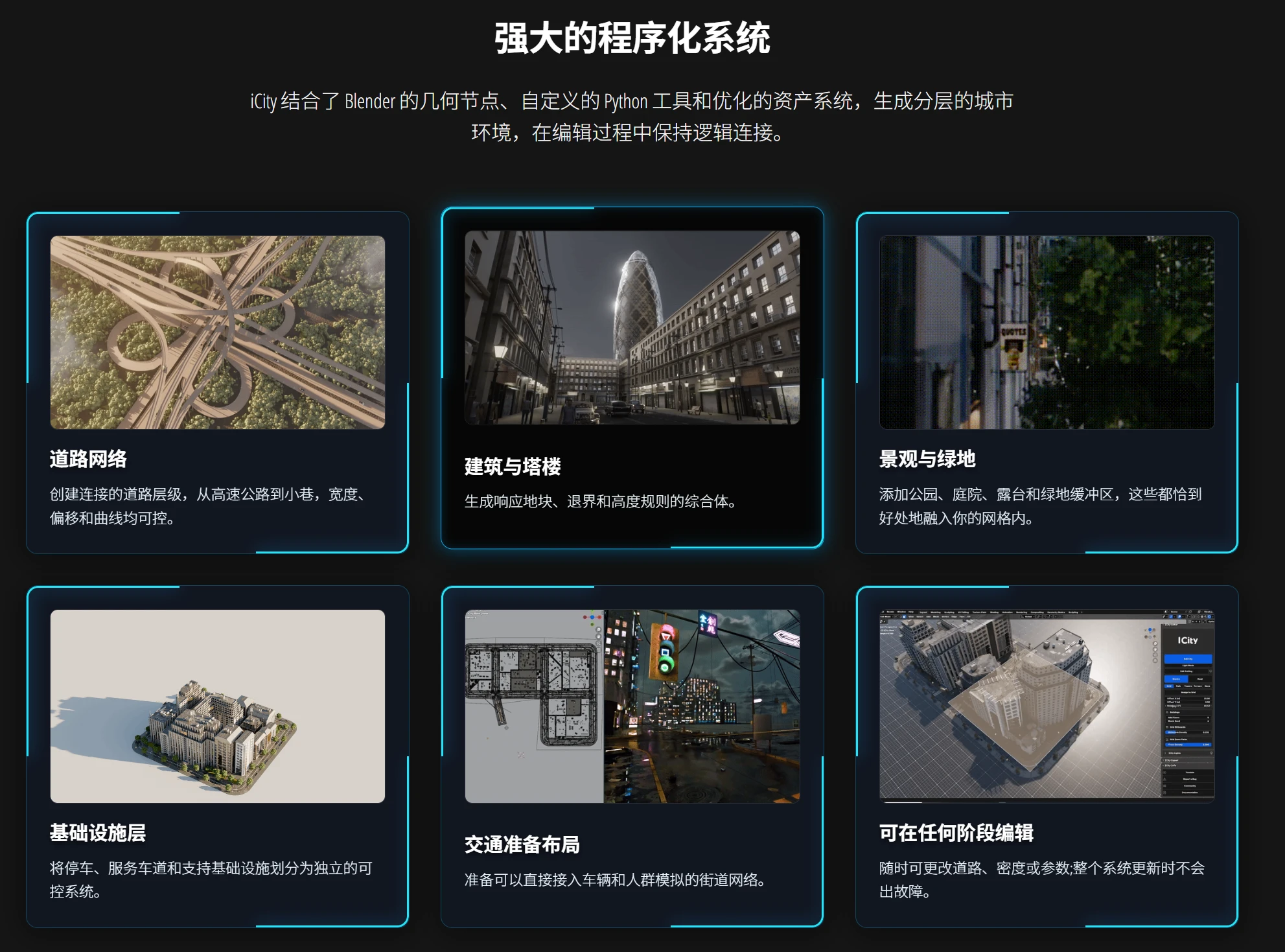 - 🏙 一键生成复杂城市布局:自动生成街道、建筑、街区结构等城市元素